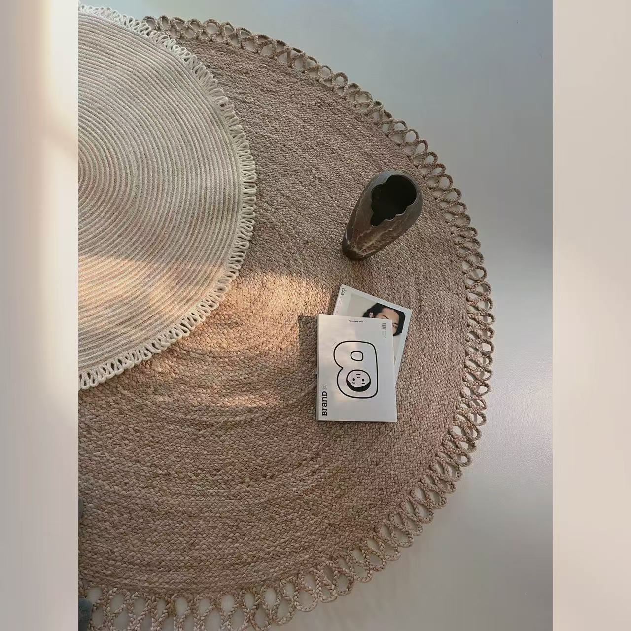 1. ラグはバングラデシュの天然ジュートを使用しており、自然乾燥させた後は一切の加工を施していません。そのため、長短さまざまな繊維があり、手織りの特性上、時折出る小さな突起やつなぎ目がありますが、これは通常の範囲内です。届いたら、必要に応じてハサミで整えてください。