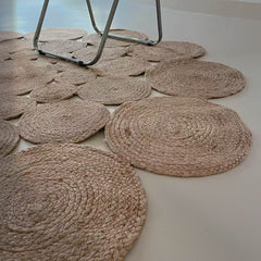 植物繊維でできているため、初めてご使用の際に多少の繊維が抜け落ちる場合がございます。これはジュートラグの特性によるものです。粘着ローラーなどで取り除くことをおすすめいたします。
